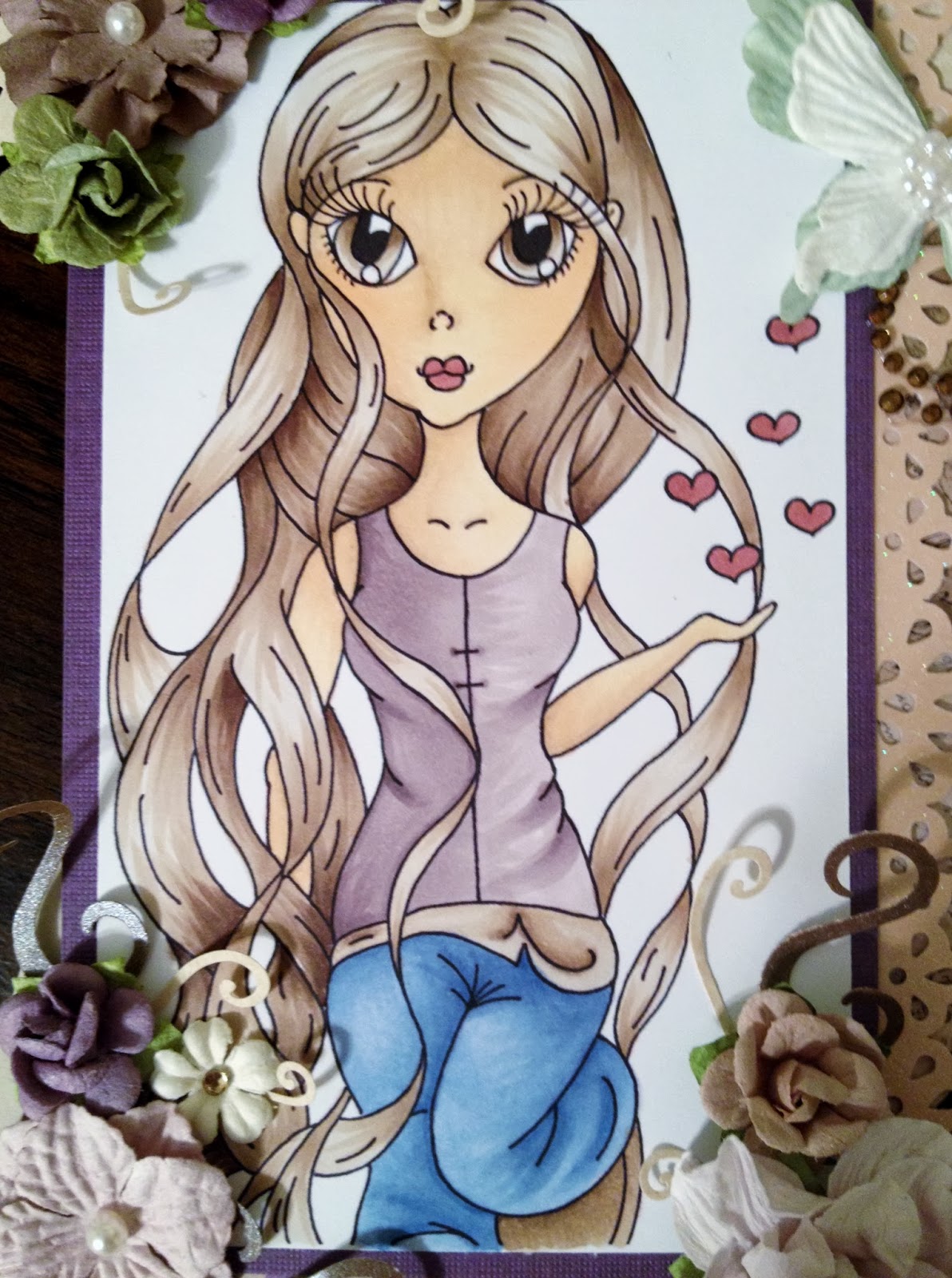 This beautiful card is for one of my grandmas. She loves flowers, so I tried to create something special with tons of floral embellies for her.